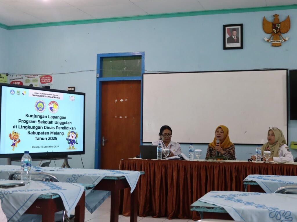 Karangploso, 10 Desember 2025 – SMP Negeri 1 Karangploso menerima Kunjungan Lapangan Program Unggulan di lingkungan Dinas Pendidikan Kabupaten Malang sebagai bagian dari kunjungan tahap kedua yang dipimpin oleh Dr. Azizatuz Zahro’, S.Pd., M.Pd., dosen dari Universitas Negeri Malang (UM). Kegiatan ini merupakan bagian dari program kerja sama antara Dinas Pendidikan Kabupaten Malang dan UM.
